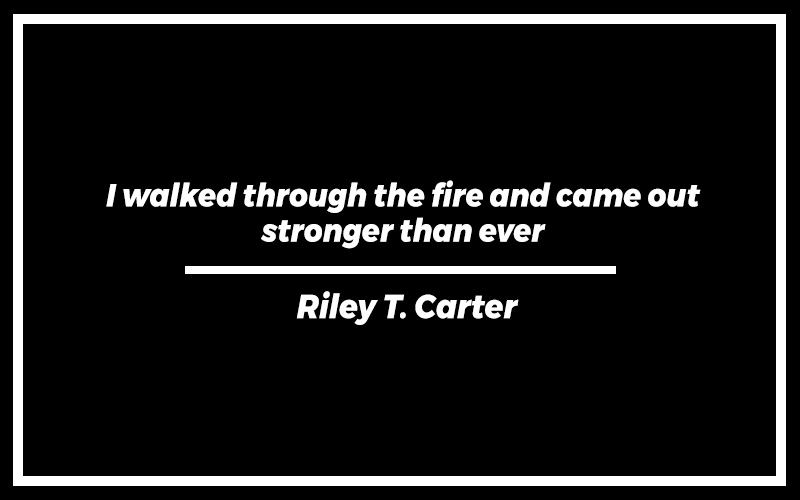 “I walked through the fire and came out stronger than ever.” – Riley T. Carter